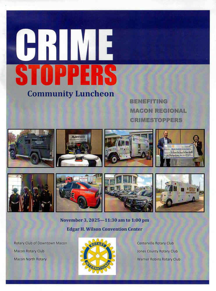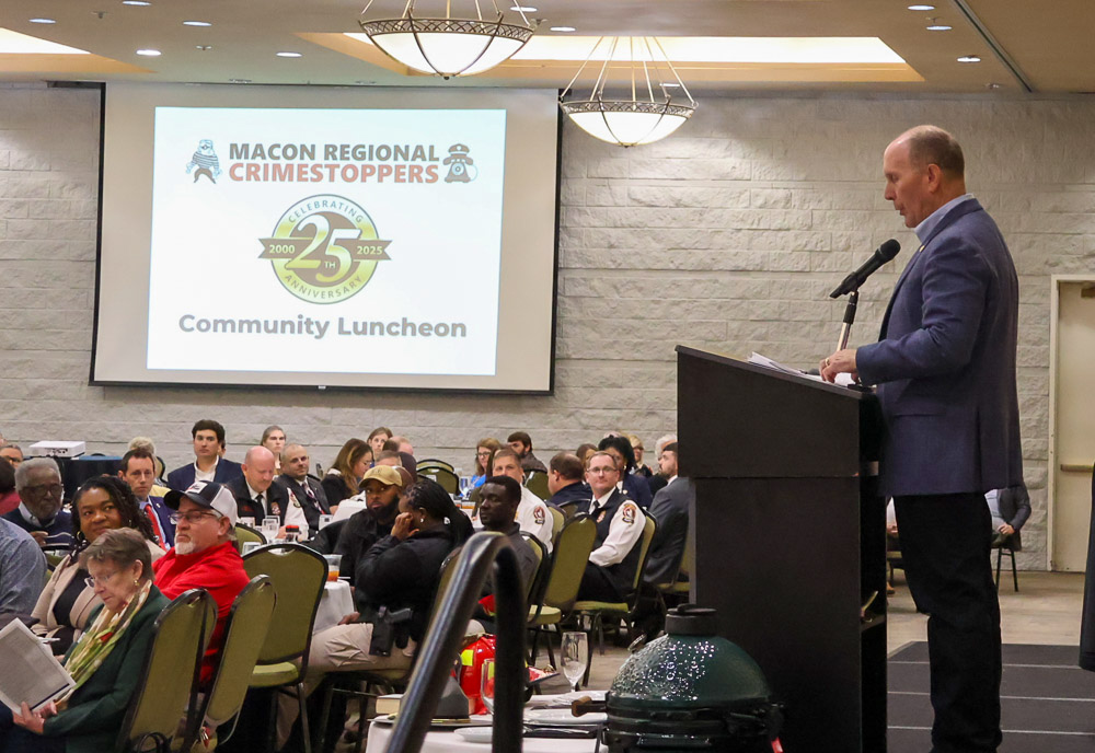 Macon Regional Crimestoppers hosts one annual luncheon to increase awareness of our activities and offer our appreciation to our law enforcement and media partners. We actively solicit sponsorship and support for these events, which raise funds for Crimestoppers. The luncheon always feature an interesting speaker and frequently includes raffle and auction items with proceeds going to support the reward program.